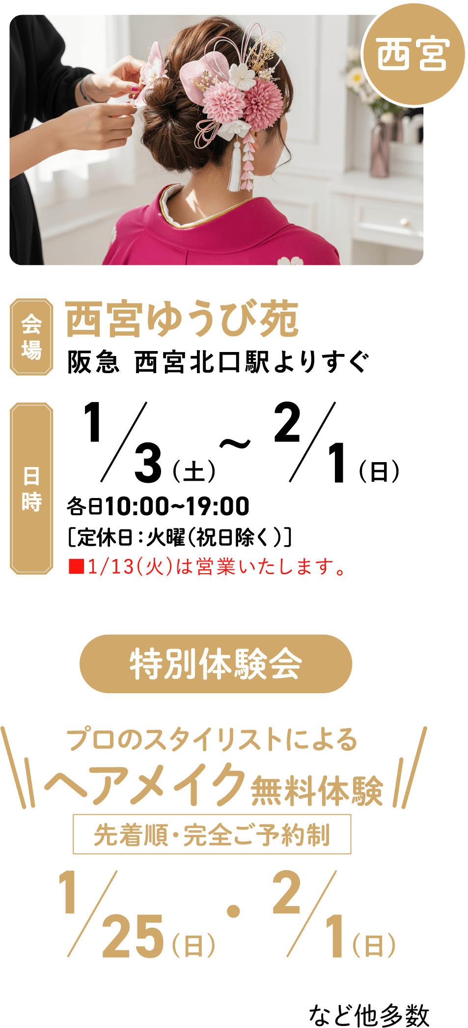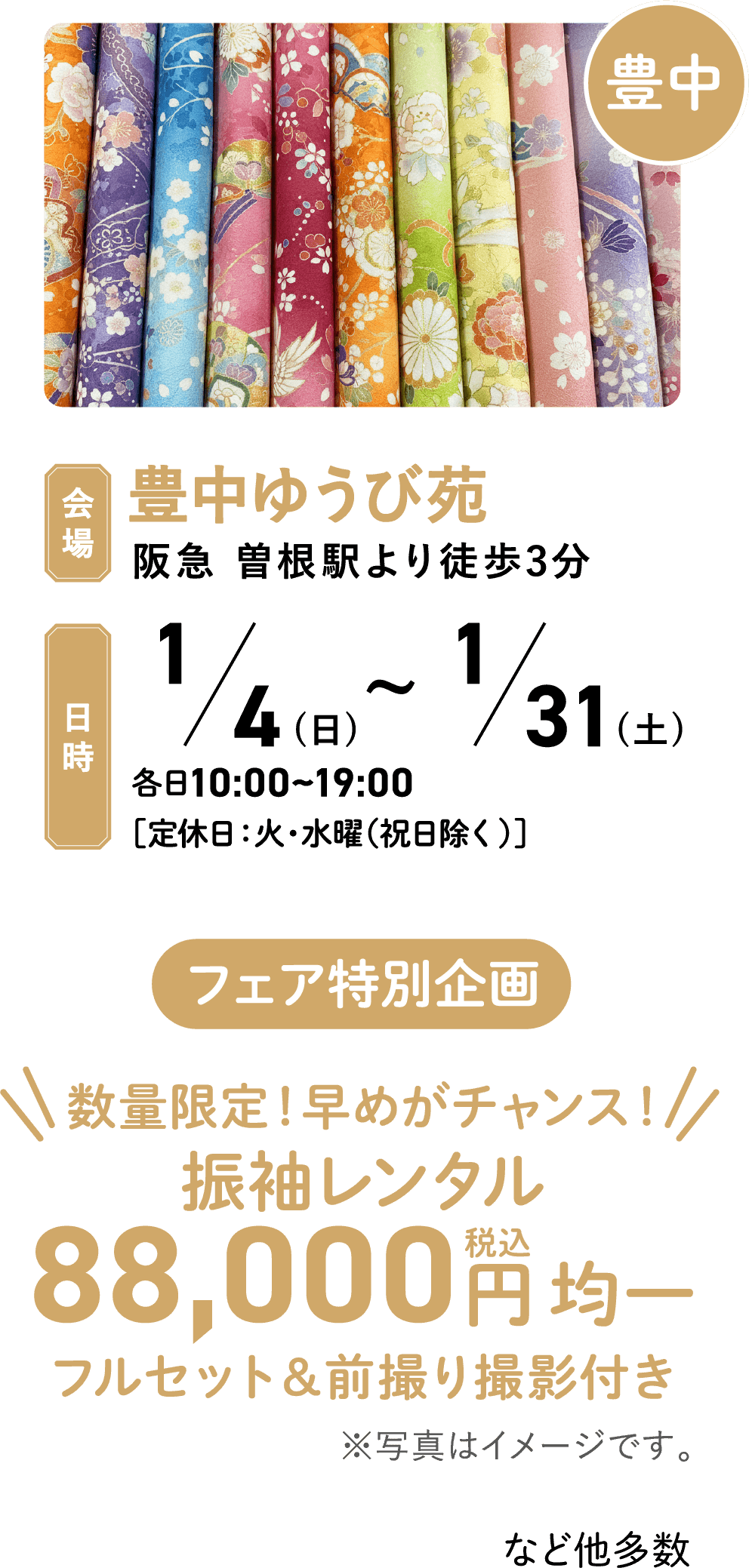 ご購入いただいたお客様のご姉妹の振袖レンタルを最大30%割引、カタログ商品は10%割引(新作除く)させていただきます。