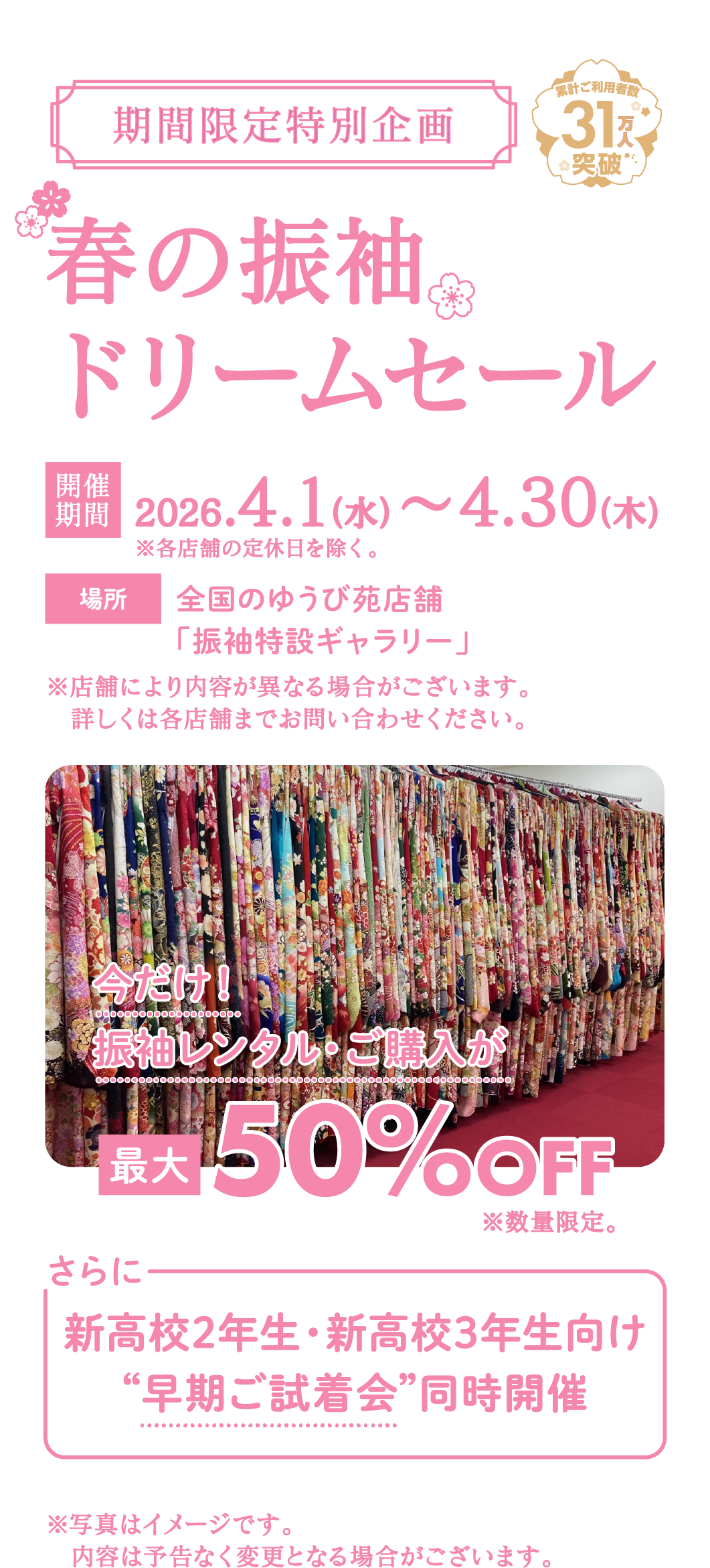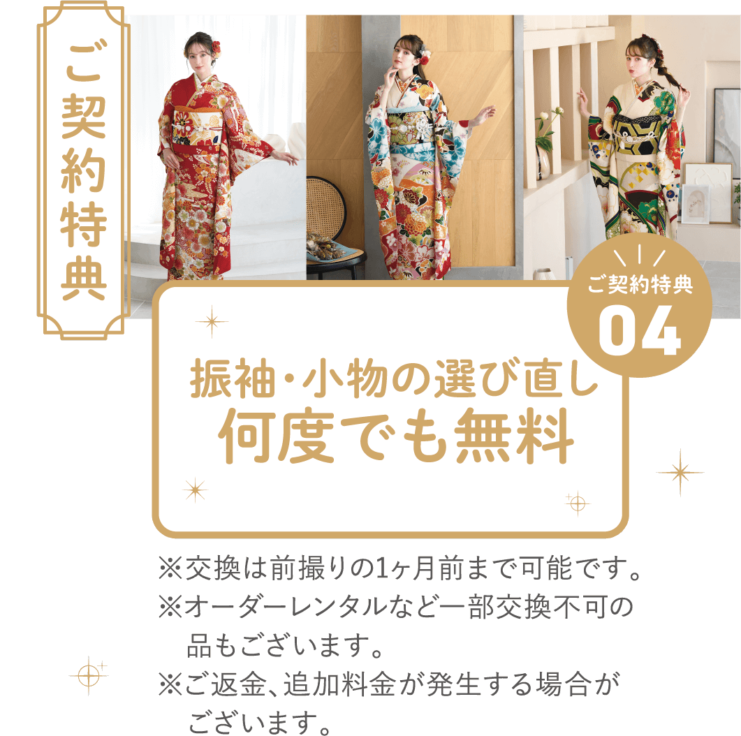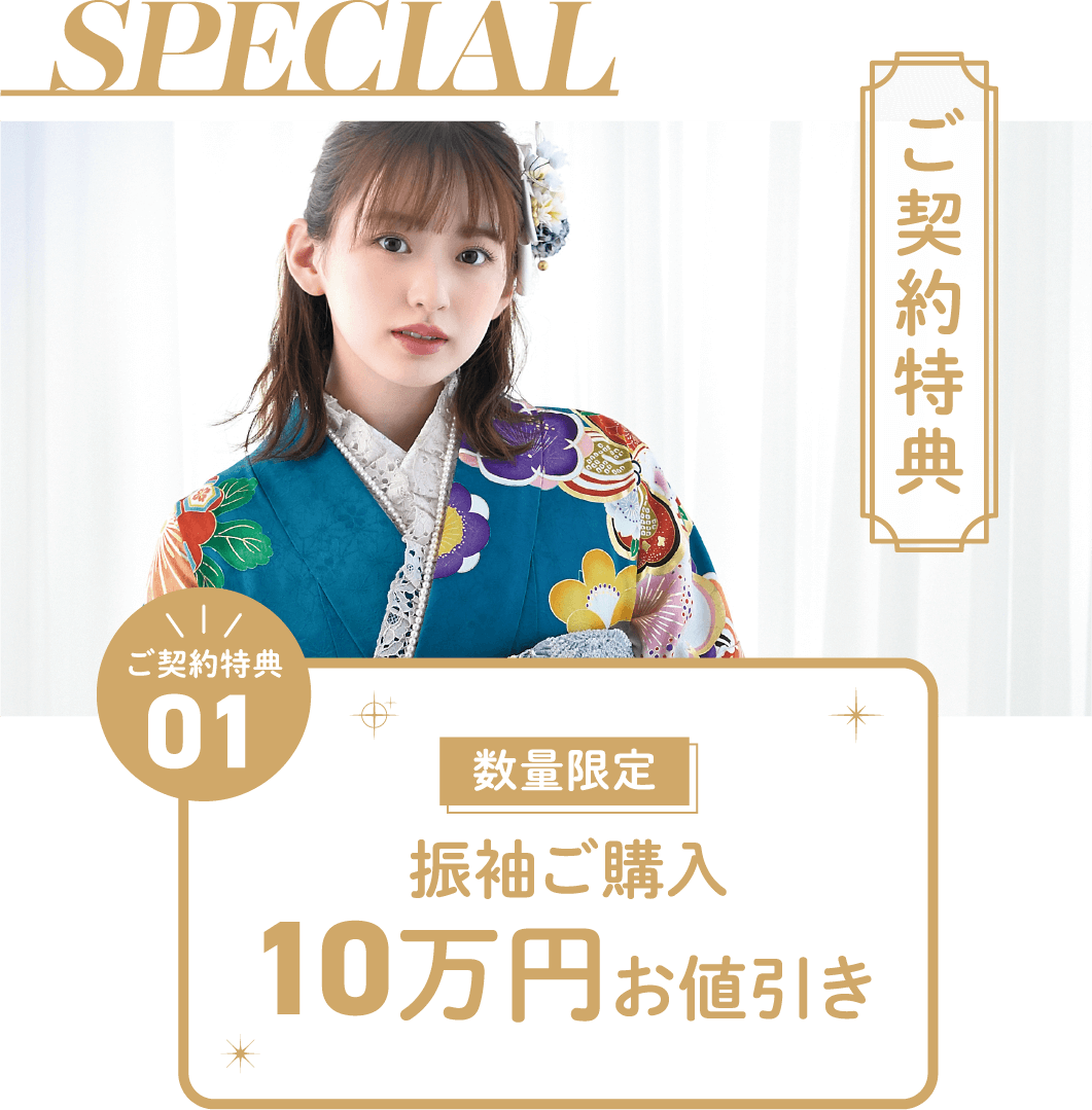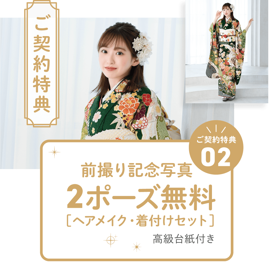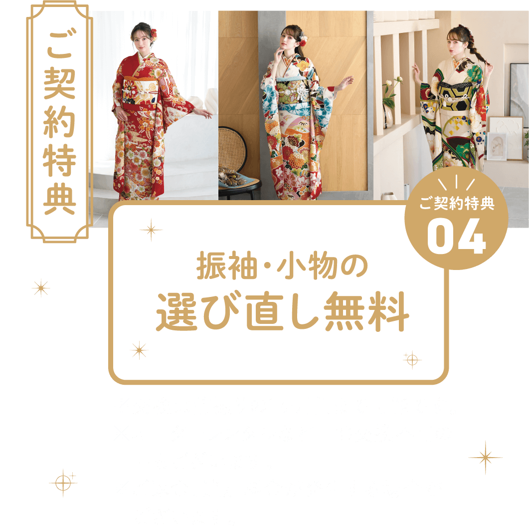 ご契約当日から、振袖レンタルを今後何回でも80%割引にてご利用いただけます。