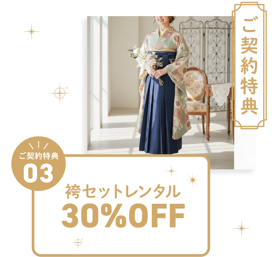 卒業式の袴レンタルを30%割引いたします。